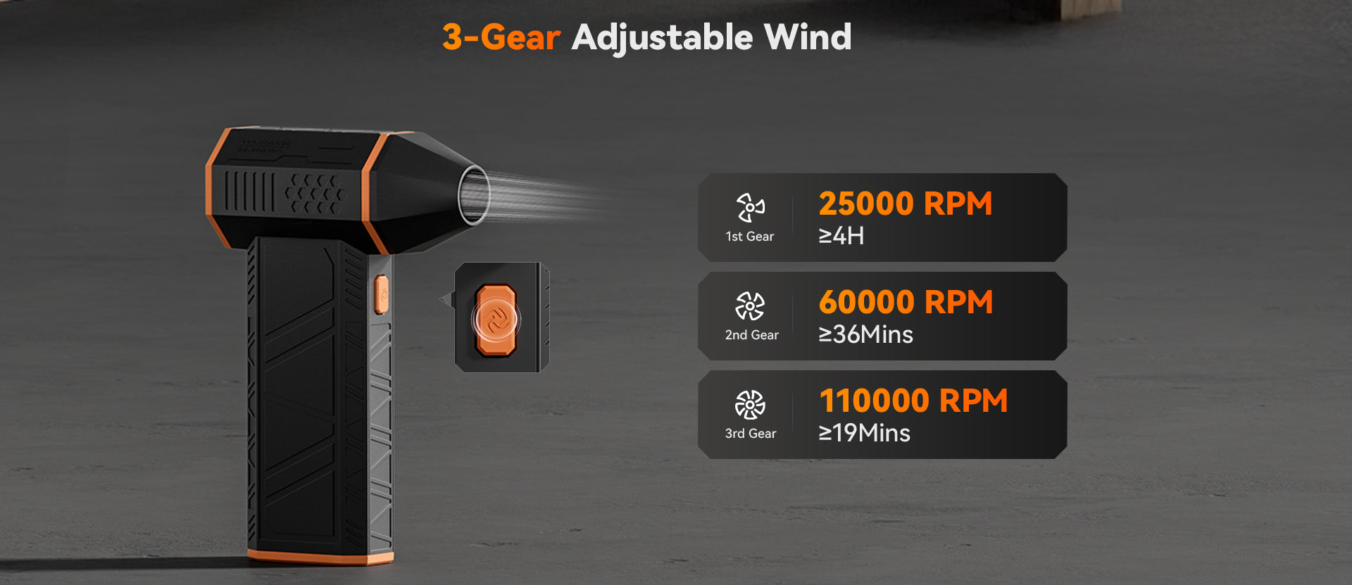 Ultra-Powerful Turbo Fan – Up to 110,000 RPM