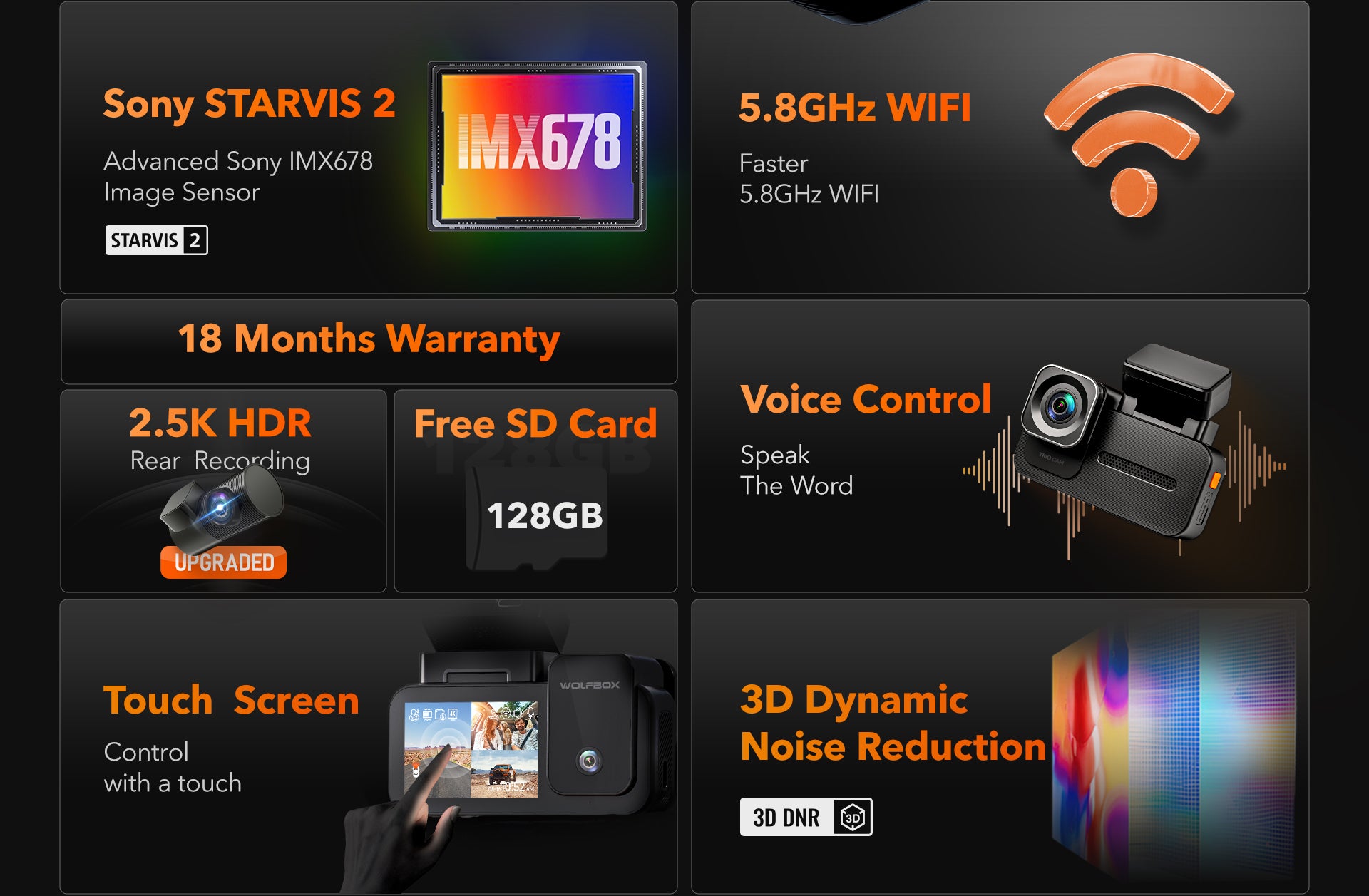 WOLFBOX X5 3 Channel Touchscreen WiFi Mini Dash Camera